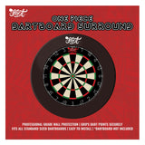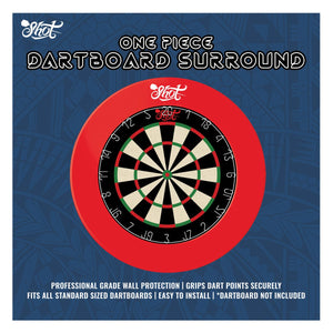 Protect your walls from stray steel tip darts with the heavy-duty professional one-piece dartboard surround from Shot Darts. The durable injection-molded polymer ring fits securely over all standard-sized dart boards and holds stray dart points securely. Weighing in at 2 kilograms, it's light and easy to install, just simply slip over your dartboard, and you're ready to go.